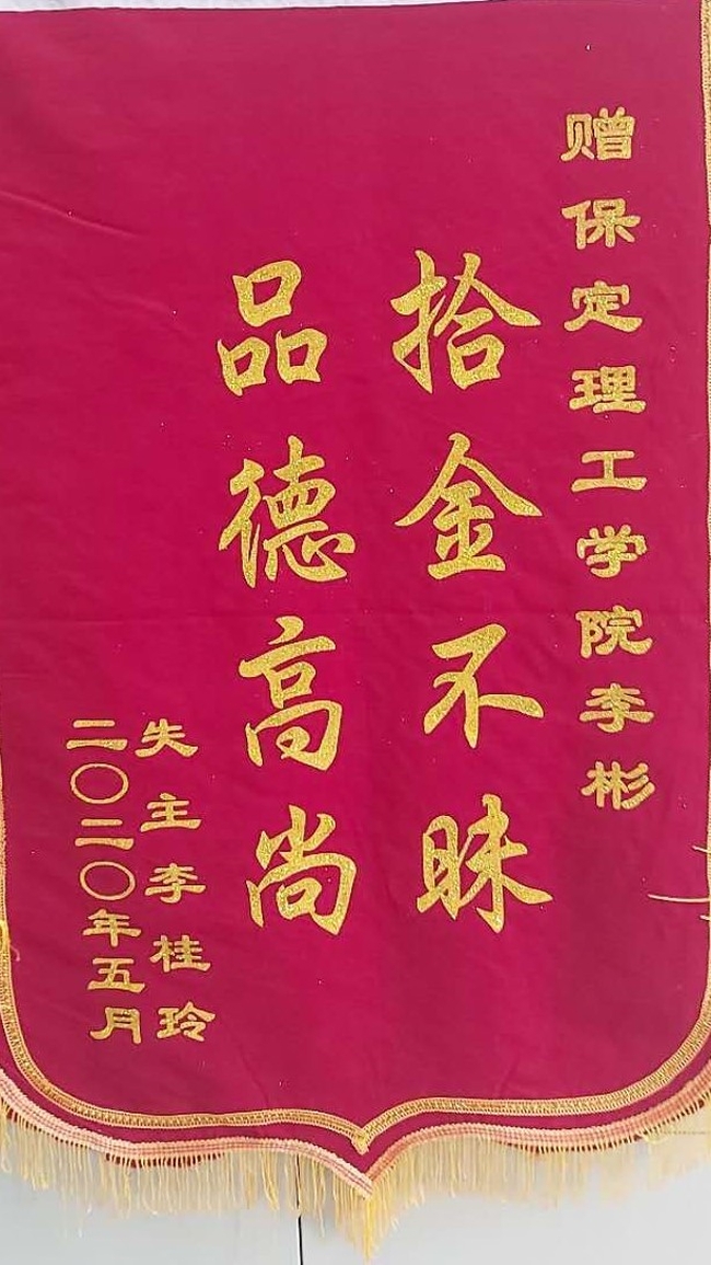 Beat365李彬同学拾金不昧受表扬---归还失主现金壹万元 拒收金钱回报