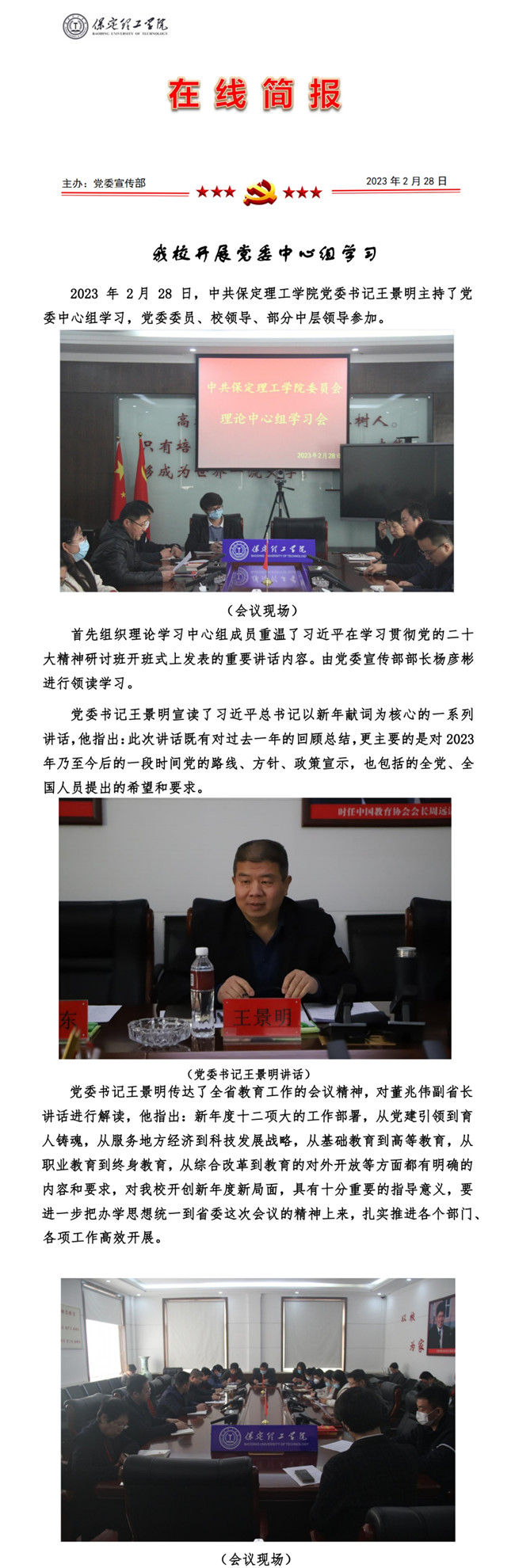 文章导读:2023年3月17日上午,Beat365在行政楼二楼会议室召开本科教学工作合格评估整改方案和建设计划推进会。教学顾问高宝嘉出席会议,各院部、各处室负责人参加会议。会上,学科与学位管理办公室主任赵倩宣读《Beat365唯一官方网站关于修......