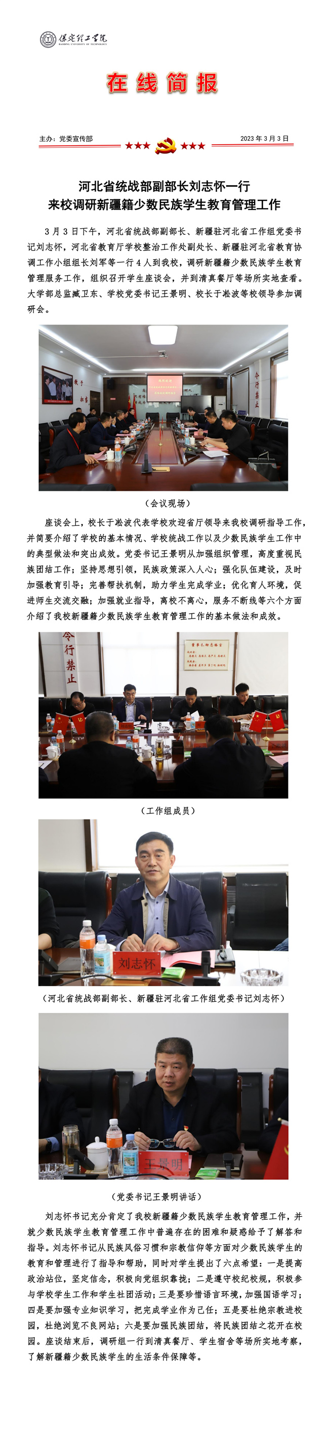 河北省统战部副部长刘志怀一行 来校调研新疆籍少数民族学生教育管理工作