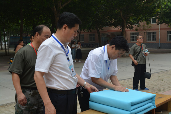 文章导读: 8月24日上午11:00全体辅导员在九号楼广场集合,进行叠军被比赛。 首先由辅导员毕华进行了叠军被演示,毕华导员耐心讲解了动作要领并逐一示范,然后,在学工处长的唐国才的指令下,辅导员开始了紧张而激烈的比赛。烈日当......