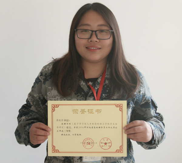 薄晓营在河北省高校辅导员工作优秀论文评选活动中喜获佳绩