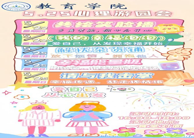 亲爱的同学们,在忙碌的学习生活中,你是否偶尔也想停下脚步,关照一下自己的内心?5·25全国大中学生心理健康日即将到来,教育学院精心筹备的5·25心理游园会,就像一场